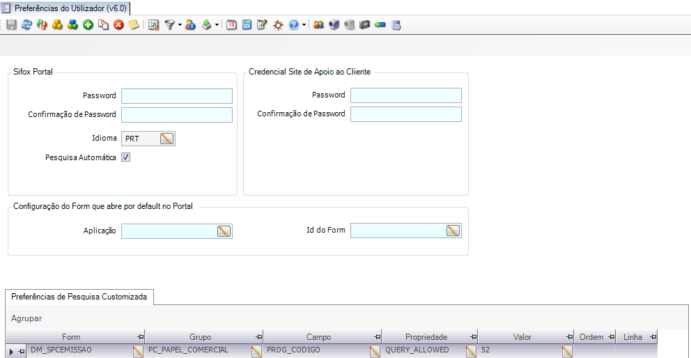 Este processo permite definir aquando do Login no Sifox Portal a abertura automática de um ecrã.