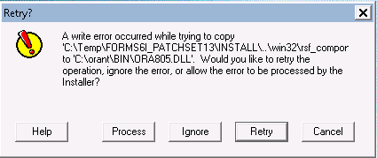3) Proceder com o Install e no final clicar em Exit. De seguida execute o setup.exe dentro da pasta FORMS6i_PATCHSET13 com permissões de administrador e selecione as seguintes opções: