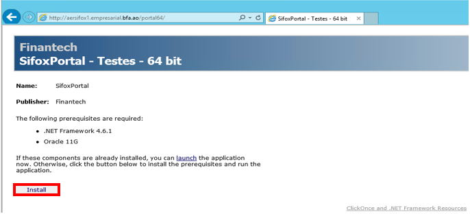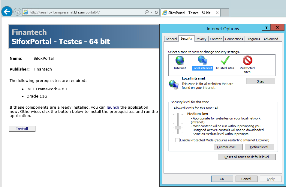 Para aceder aos links de instalação do Sifox Portal, sem problemas, estes devem estar presentes na zona de segurança “local intranet” ou “trusted sites” do Internet Explorer.
