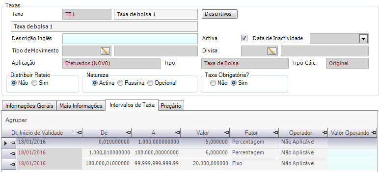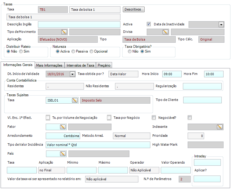 Esta taxa de bolsa é associada de forma automática cada vez que é registado um efetuado e as condições de aplicabilidade da taxa estejam reunidas. Para ter mais informações sobre este movimento deve consultar o manual de efetuados.