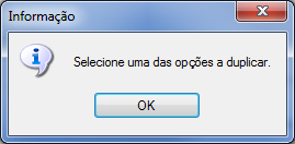 Para ultrapassar este erro o utilizador deve selecionar a ou as opções a duplicar.
