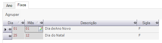Exemplo: Como registar feriados Fixo