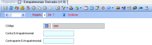 Contabilidade -> Rotinas Especiais -> Parâmetros -> Parametrização de Contas -> Extrapatrimoniais Derivados
