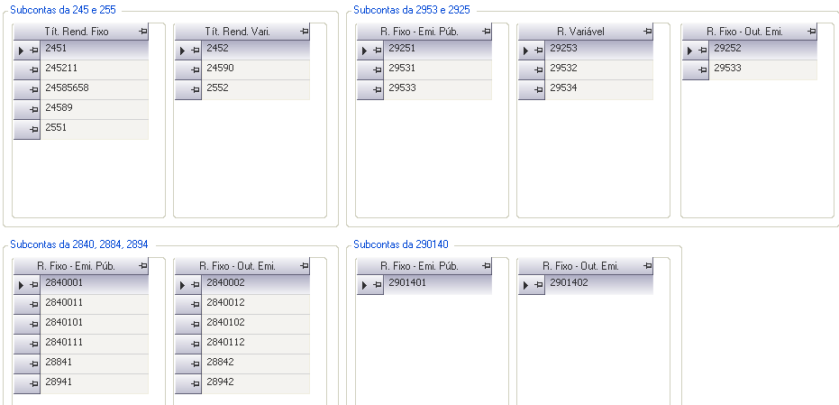 Este form destina-se à parametrização de algumas contas de grau inferior ao exigido no Plano de Contas do Sector Bancário por forma a contemplar-se a distinção imposta pelo Balanço ao nível de algumas rubricas.