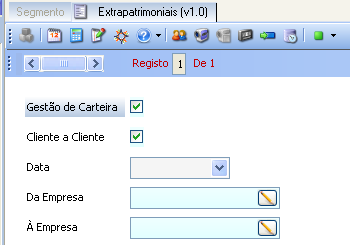 Este form permite desencadear o lançamento automático dos dados relativos às contas extrapatrimoniais, respeitando a forma de contabilização indicada pelo utilizador (débito/crédito). Este processo subdivide-se em duas etapas, feitas em datas distintas: