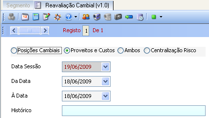 Contabilidade -> Movimentos -> Automáticos -> Reavaliação Cambial