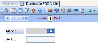 Este form permite duplicar o plano de contas do ano corrente. Esta funcionalidade prende-se com a necessidade de iniciar os registos relativos a um novo ano, antes de se ter encerrado o anterior.