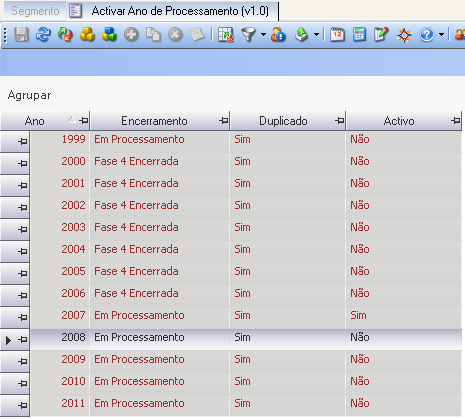 Activar o ano de Processamento