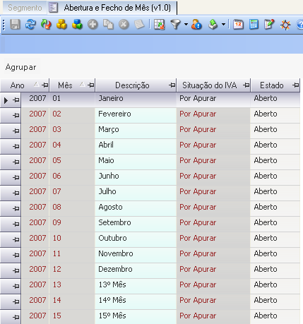 Este form permite fechar e abrir meses. A noção que está aqui implícita é a de que não se podem fazer lançamentos em meses que já estejam fechados.