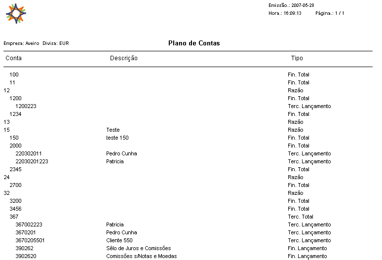 v Tipo – caracteriza a conta (razão, financeira totalizadora, financeira de lançamento, terceira totalizadora, terceira de lançamento.