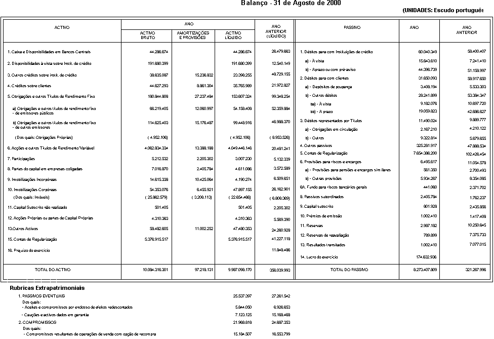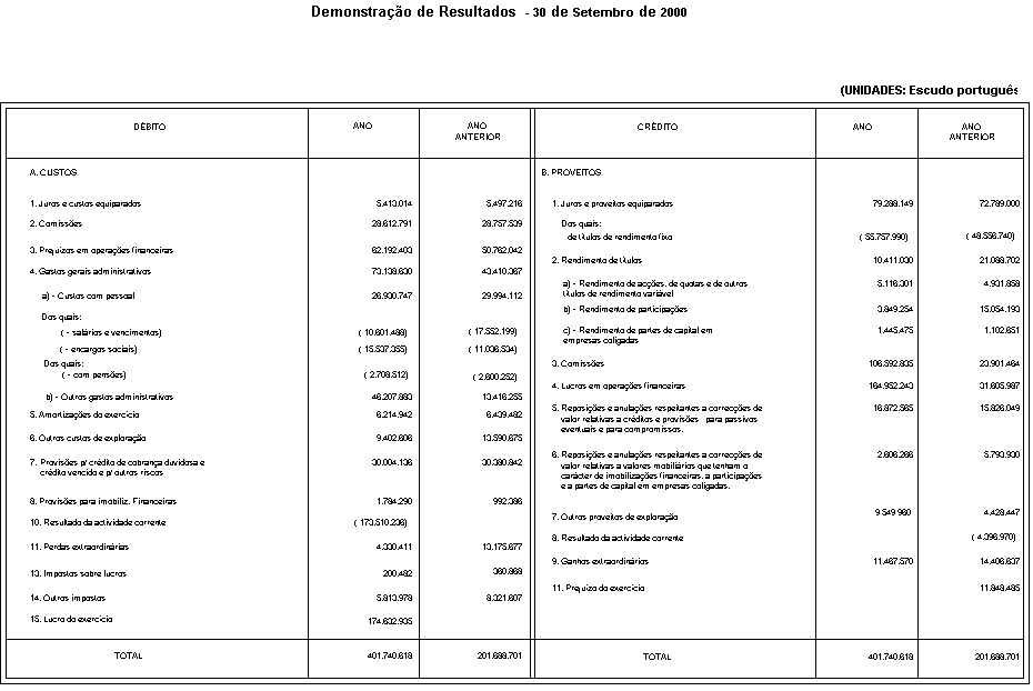 Este mapa reporta a informação típica de uma demonstração de resultados, nos moldes previstos pelo Banco de Portugal
