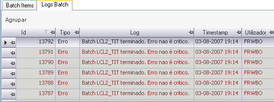 O Logs Batch permite registar e acompanhar as várias fases da execução dos processos. Poderemos então ter conhecimento das horas de entrada dos processos, o Estado do processo, bem como o utilizador por ele responsável.