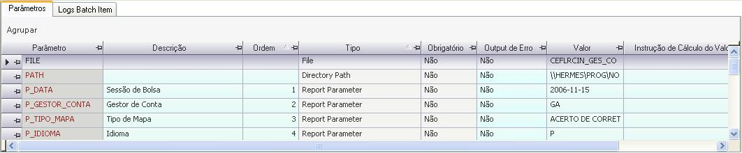 Parâmetros – Permite aceder directamente aos parâmetros do Item Batch em causa.