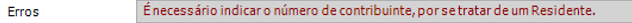 Nota: a aplicação tem regras de validação para o Nº contribuinte. Exemplo de um erro que valida o formato do Nº Contribuinte: