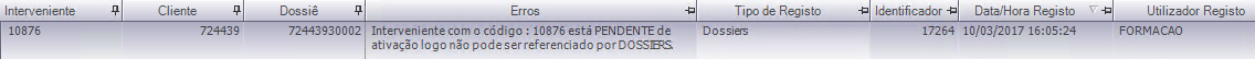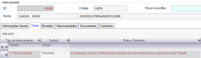A abertura do dossiê de títulos do cliente está pendente, porque o interveniente (neste caso, o que diz respeito à entidade 10876) ainda não foi corretamente registado na aplicação.