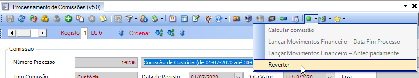 - Aceder ao ecrã Processamento de Comissões